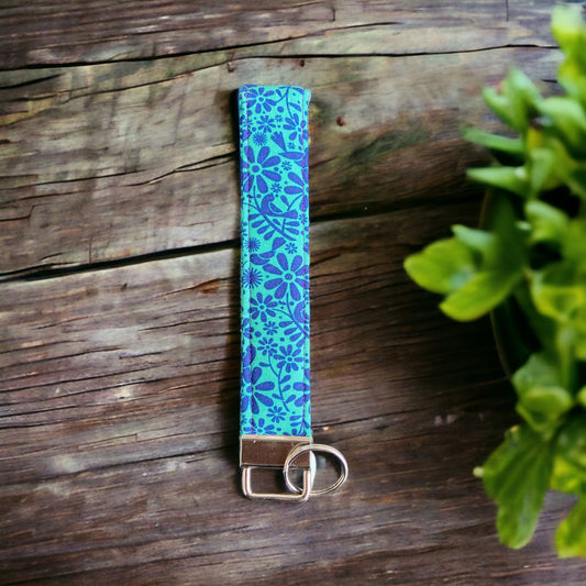 Blue Flowers Wristlet and Keychain
