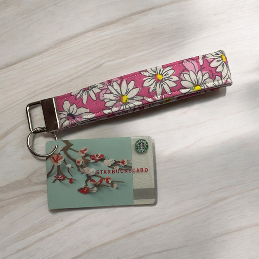 Pink with Daisies Wristlet and Keychain