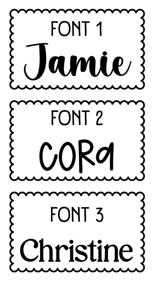 Choose from 3 different fonts, and choose to have the name in WHITE, or BLACK SPARKLES.